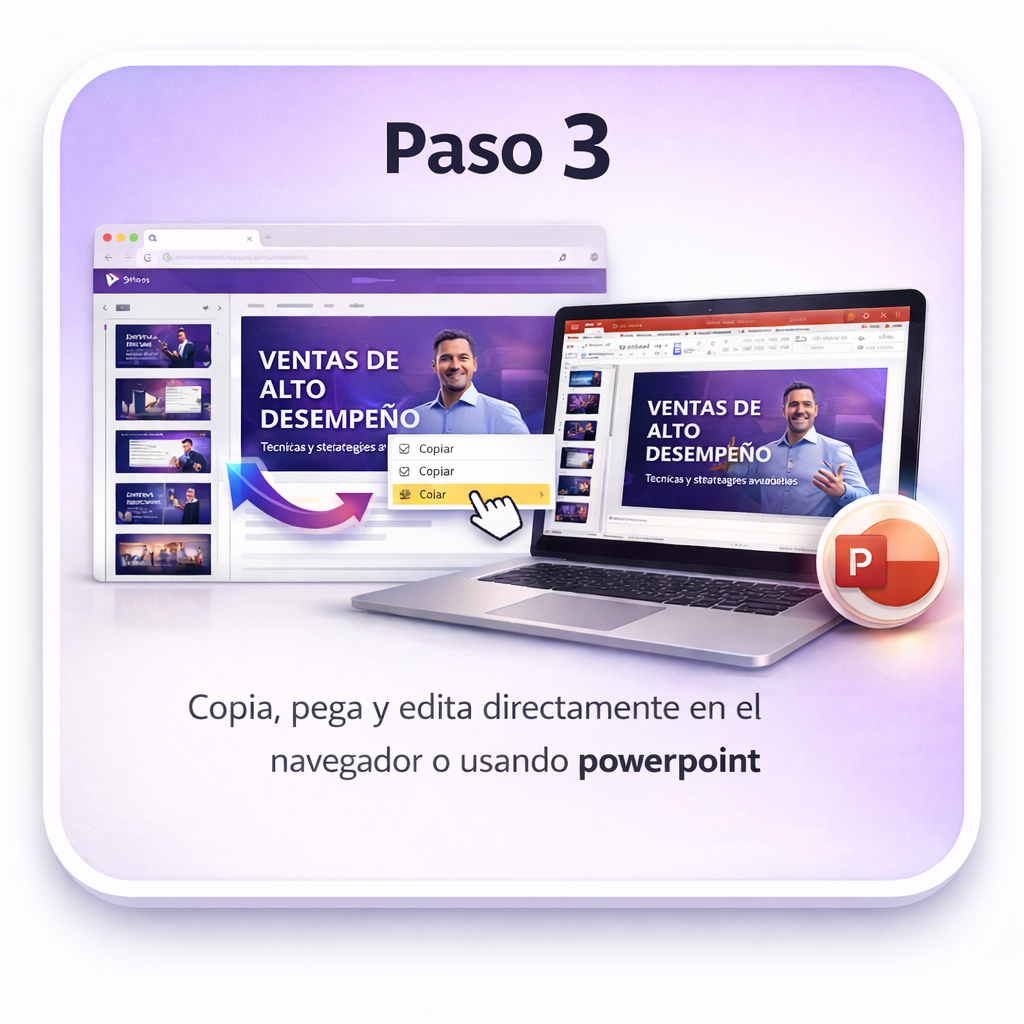 Recibirás acceso a la plataforma donde podrás acceder y editar las 280 conferencias listas. Coloca tu logotipo o nombre y utiliza las presentaciones como desees.